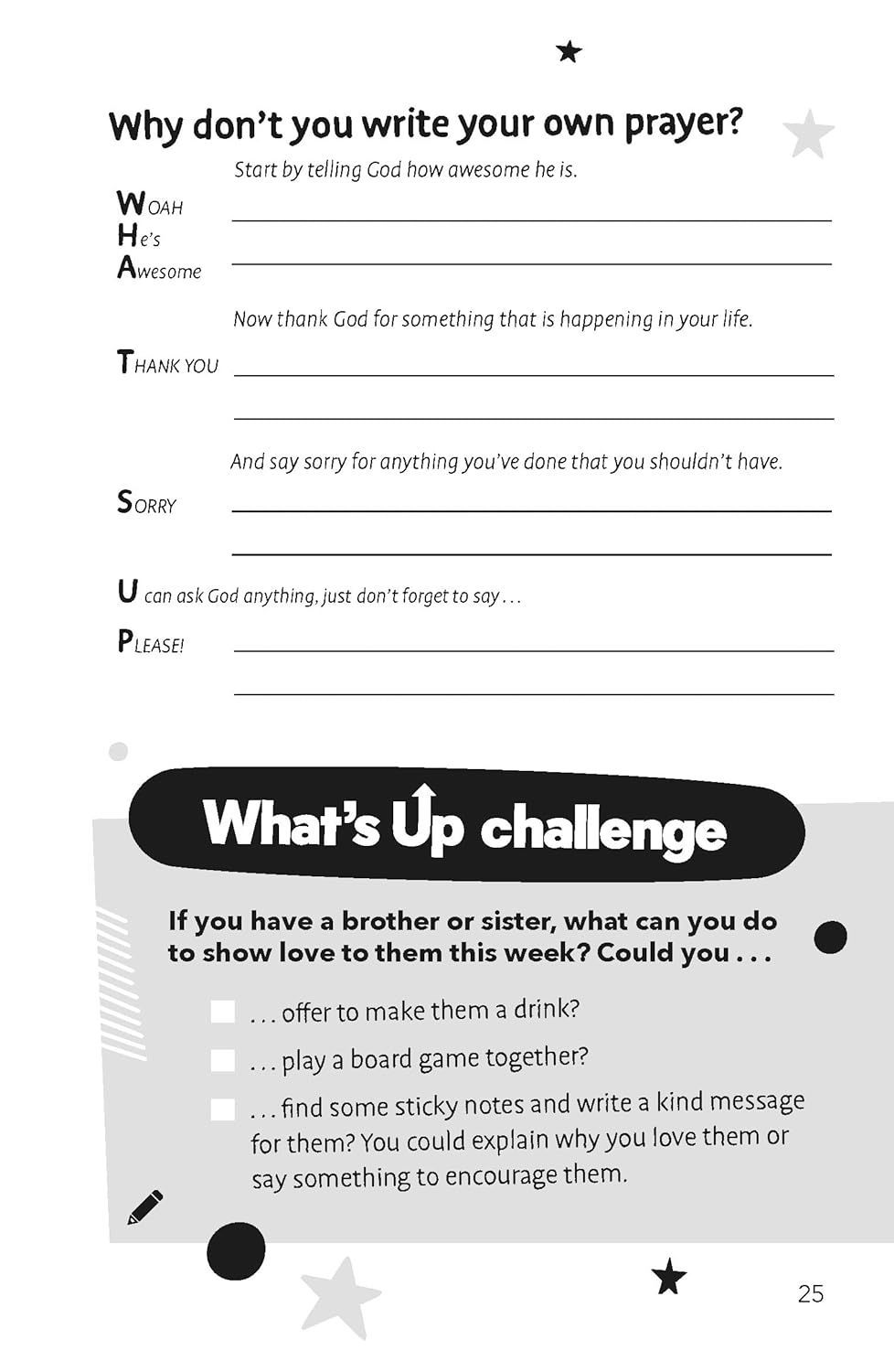 WHAT'S UP is no ordinary devotional - it's FUN: This book explores thirty topics you may face, through relatable personal stories and connecting with God. Among the reassuring Bible verses, prayers, and spaces for reflection, there are EXCITING facts, challenges, and games. The book also includes real-life stories from Rhys Stephenson, Emma Borquaye, Pete Sheath, and Tracy Wood. "Packed with wisdom and fun, it will help to equip our kids for some of the challenges of the world we live in today."